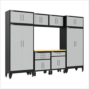 NewAge Garage Cabinets BOLD Series Platinum 9-Piece Set with Stainless Steel Top and LED Lights