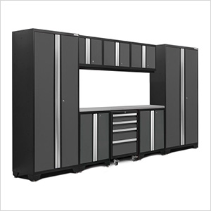 NewAge Garage Cabinets BOLD Series Grey 9-Piece Set with Stainless Steel Top and LED Lights