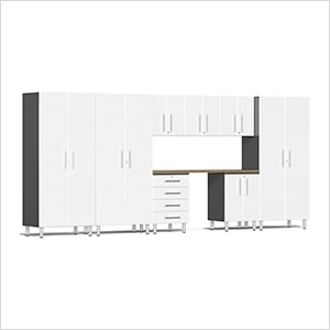 Ulti-MATE Garage Cabinets 9-Piece Garage Cabinet Kit with Bamboo Worktop in Starfire White Metallic