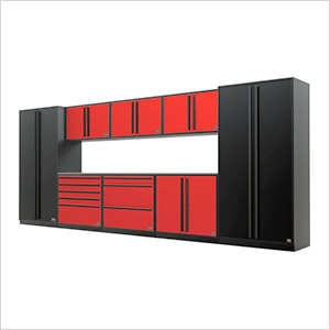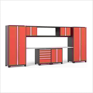 NewAge Garage Cabinets PRO Series Red 9-Piece Set with Stainless Steel Top