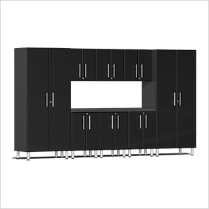 Ulti-MATE Garage Cabinets 9-Piece Garage Cabinet Kit with Channeled Worktop in Midnight Black Metallic