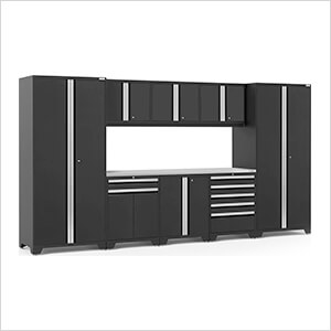 A great addition to your garage or workshop, the 9-piece PRO 3.0 series cabinet set with stainless steel worktop is made from 18 gauge steel fully welded frames and 19 gauge double wall doors.