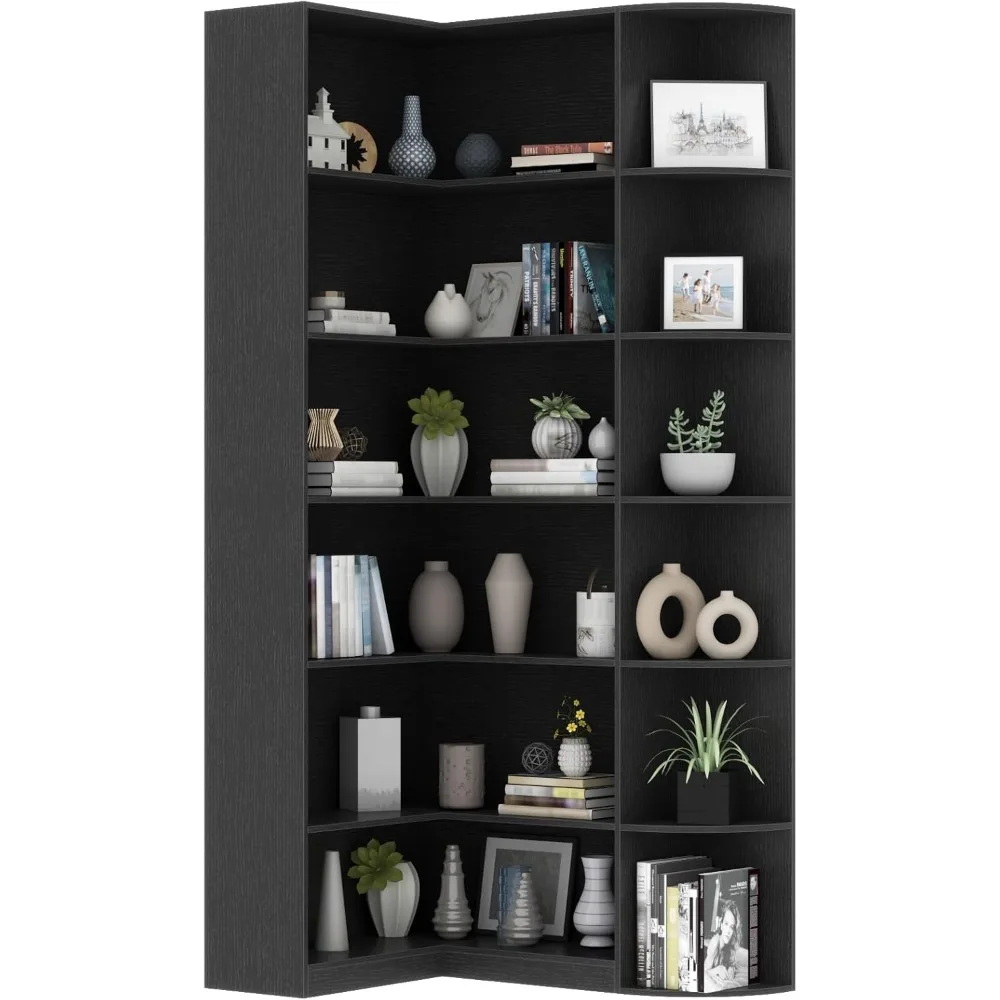 black book shelf, 6 tiers shelf large tall corner etagere bookcase with full baffle, l-shaped modern storage display industrial  Read more