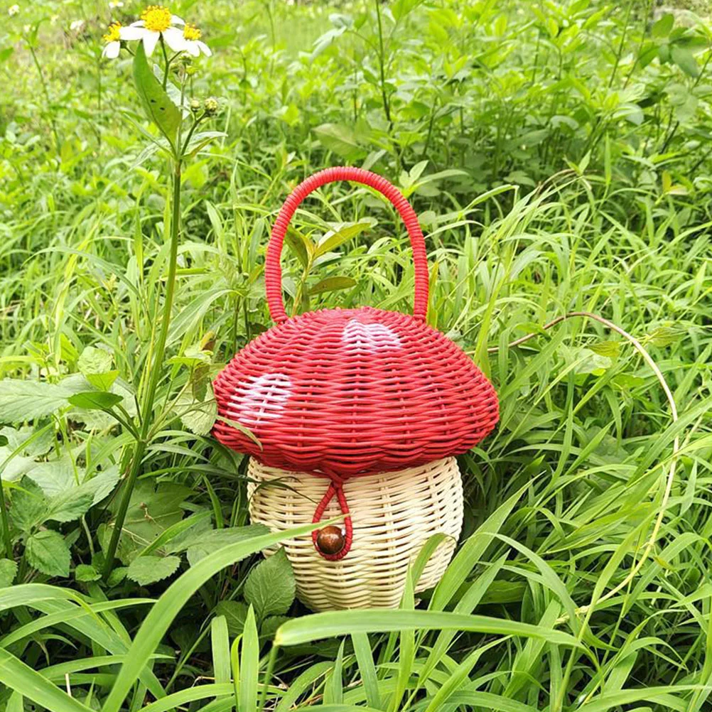 Portable Handbag Decor Rattan Mushroom Bag Girl Woven Basket Candy Storage Baskets Kids Photo Prop Basket Bag Home Storage  Read more