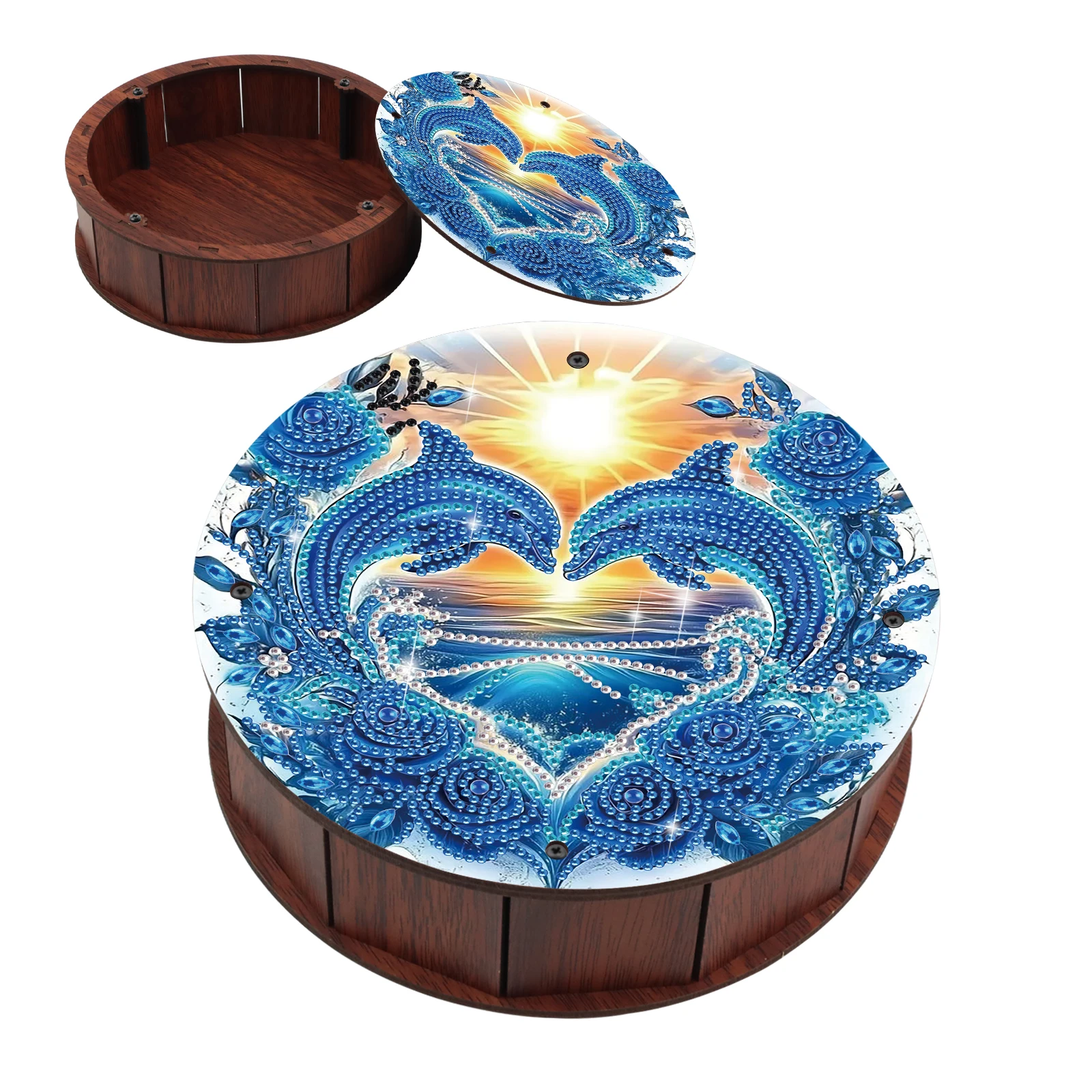 Diamond Painting Snack Box Kits, Blue dolphin DIY Diamond Art Special Shape Diamond Rotundity Storage Box for Handmade Decor Gift