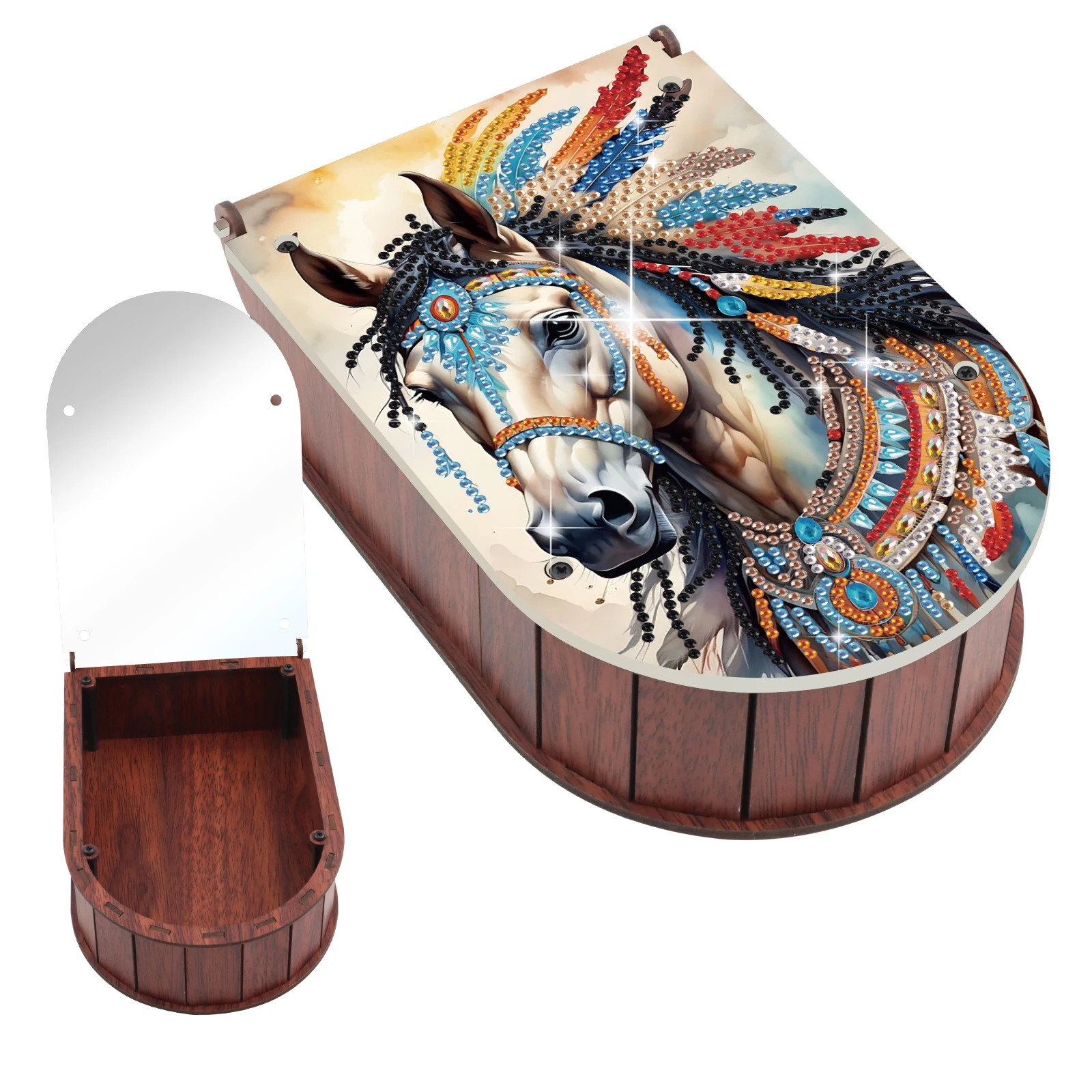 Diamond Painting Curved Storage Box Kits, Tribal horse Diamond Art Special Shape Diamond Ornaments Storage Box Decor Home Gifts