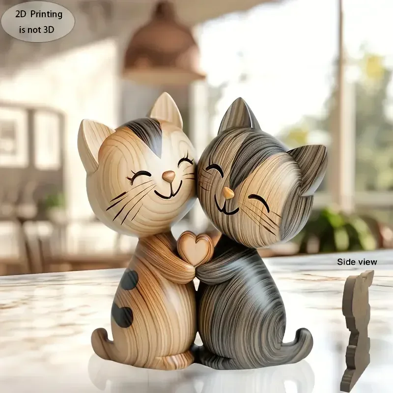 2D Flat Cat Wooden Kitten Dog Couple Sculpture Rabbit Enthusiast Gift Light and Dark Wood Grain Desktop Home Decoration New  Read more