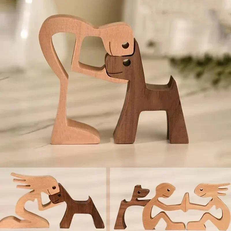 Creative Wooden Carving Human Dog Family Statue Home Room Decor Girl With Dog Wood Art Figurine Ornement Decor Gift for Your Cat  Read more