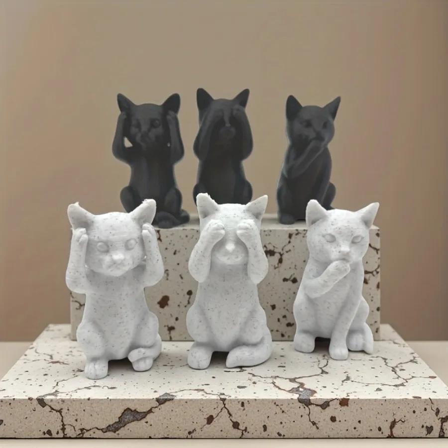 3 Minimalist Three Wisdom Cat Sculptures, Cat Shaped Sculptures, Unique Home Smart Ornaments, Designed Without Smell or Words