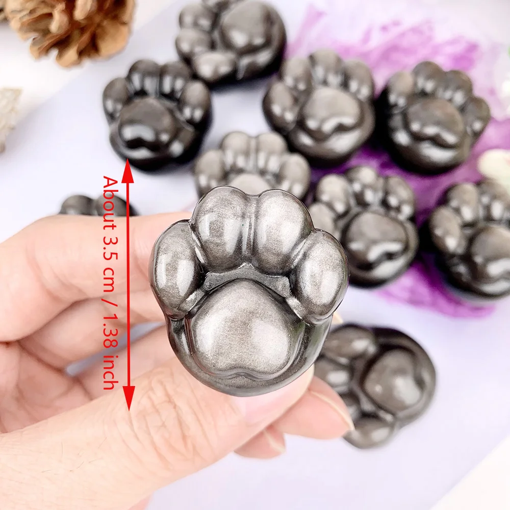 1 Natural Silver Obsidian Cat Claw Meatball Cute Home Decor Desktop Decoration Mineral Crystal Stone Collection Gift