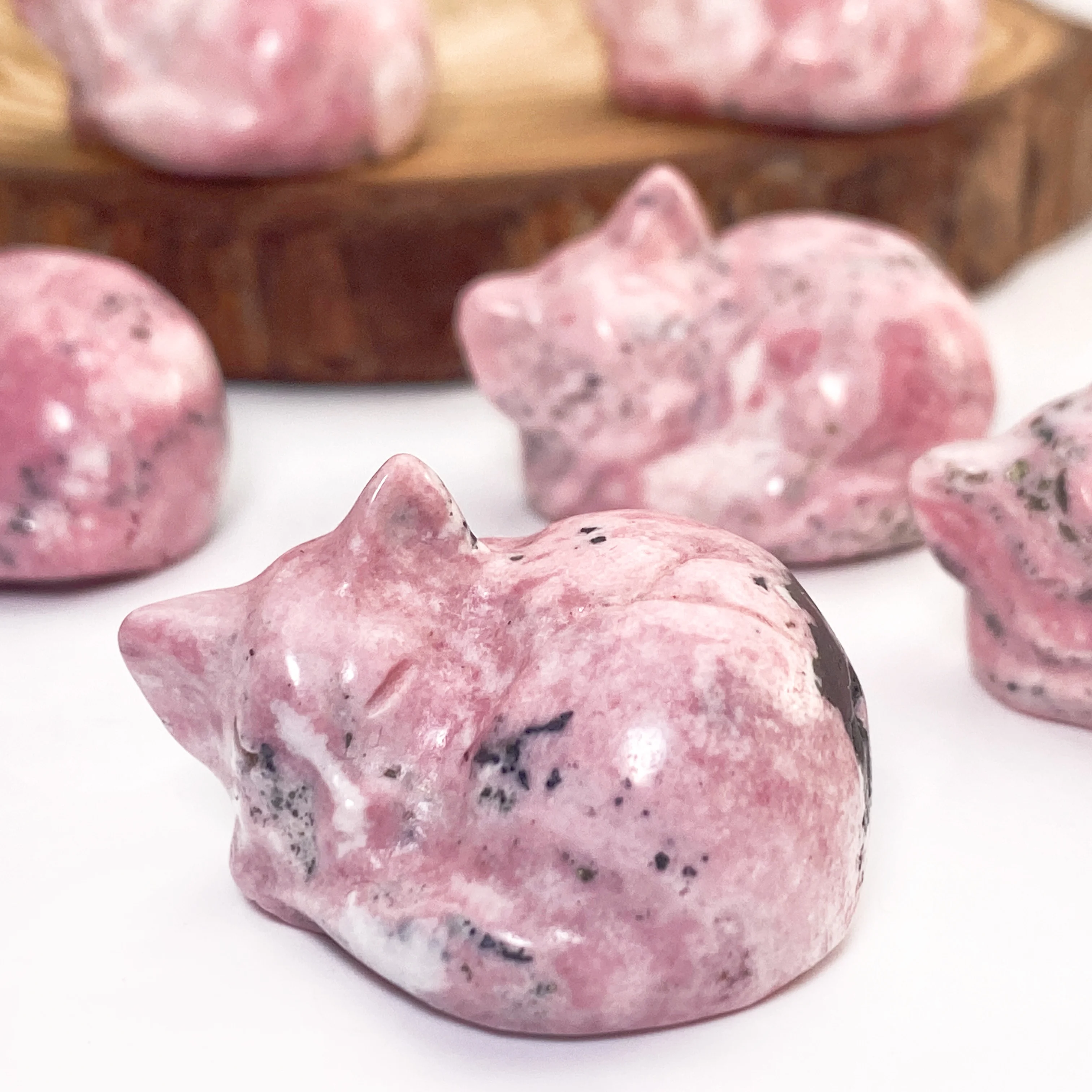 1PC Pink Rhodonite Sleeping Cat Carving, Stone Collections, Excellent Gifts, Family And Friends Gift, DIY Decoration, Room Decor