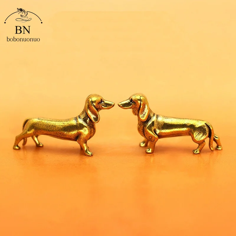 Pure Copper Dachshund Statue Sausage Dog Vintage Brass Figurines Home Desktop Ornament Miniatures Antique Tea Pet Crafts Gifts