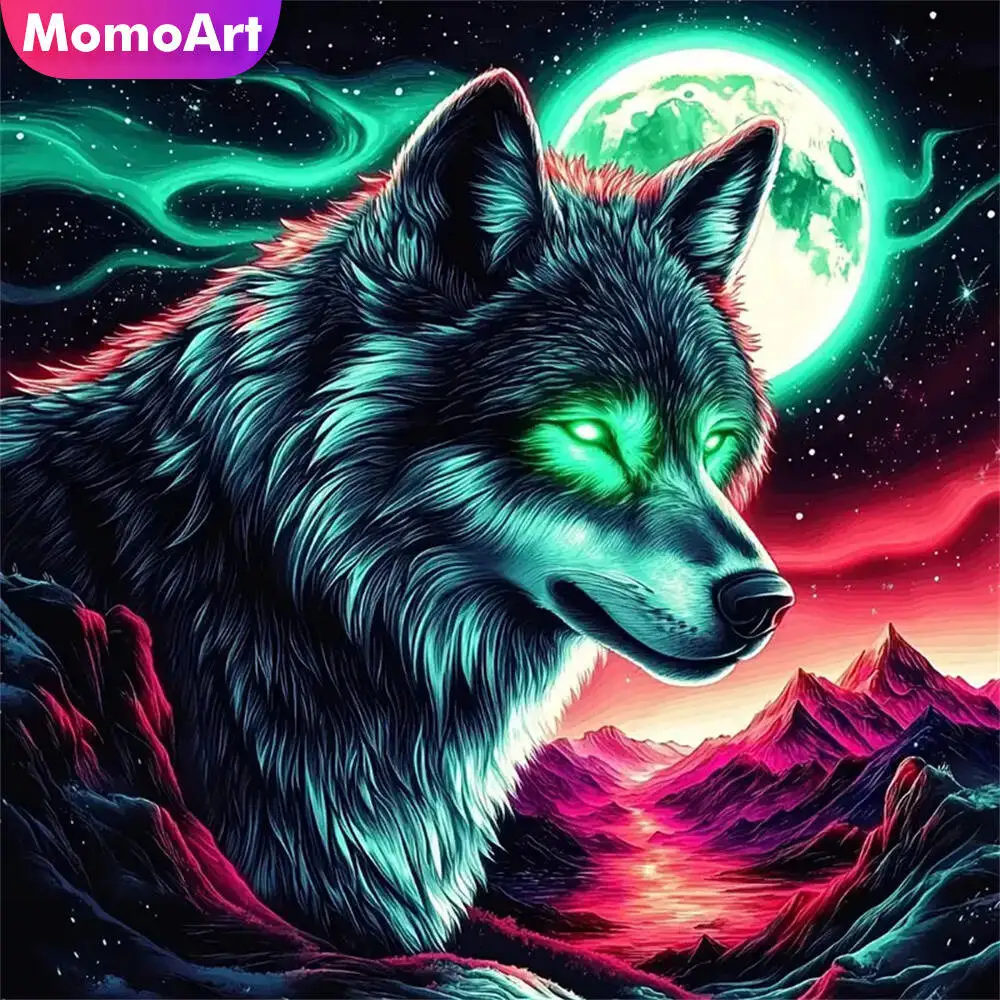 Momoart DIY Diamond Mosaic Wolf Animal Painting Moon Pattern For Adults Beginners Diamond Embroidery Dog Unique Gift