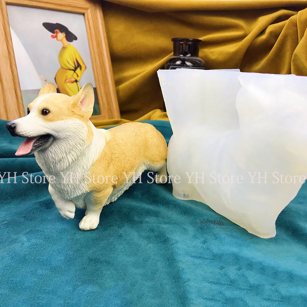Corgi Dog Resin Casting Mold Plaster Pet Puppy Simulation Resin 3D Dogge Concrete Silicone Mold DIY Home Decoration Candle Tool