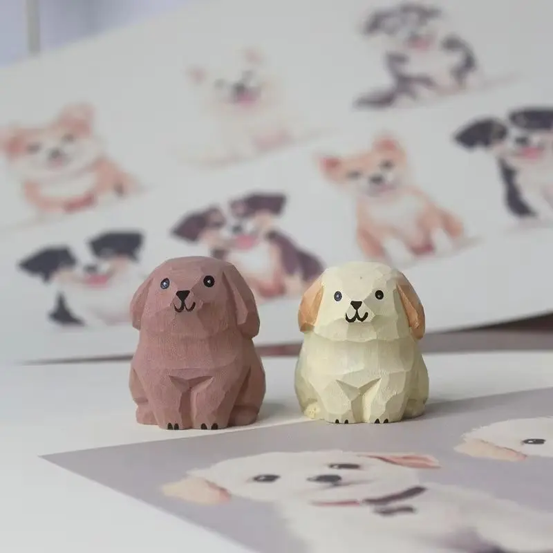 Hand Carved Puppy Wood Figurines Adorable Canine Statue Multi Purpose Hanging Ornament Heartwarming Gift Lovely Wooden Dog Decor