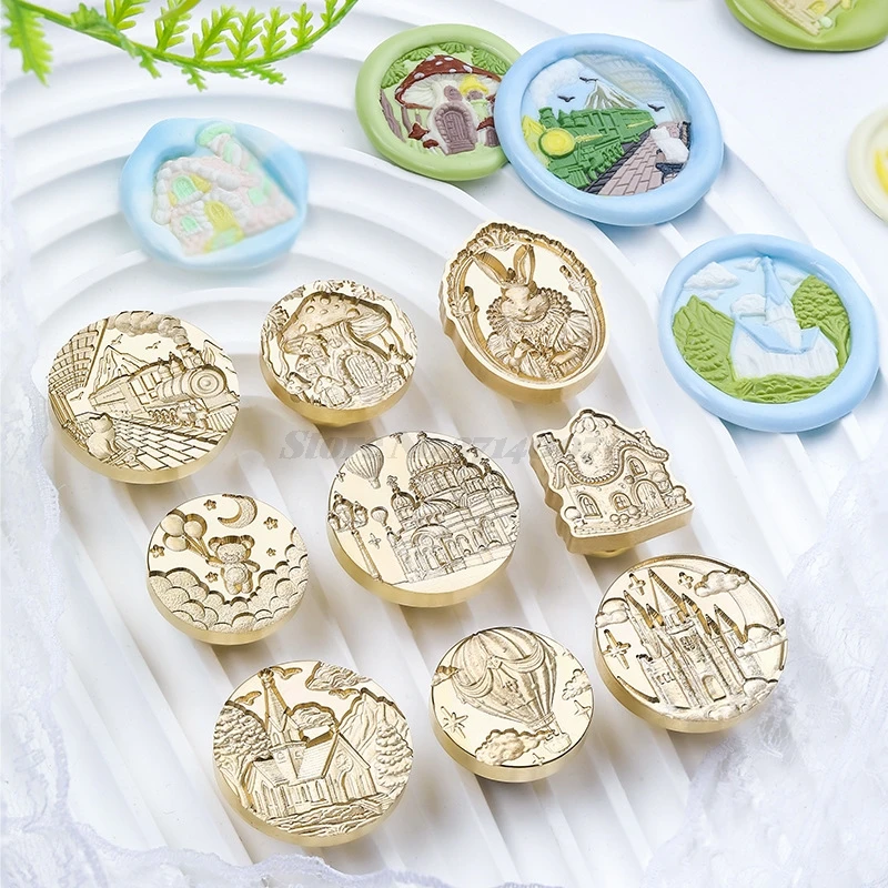 Fairytale Relief Brass Wax Seal Stamp Heads Noble Rabbit Castle Station Handmade Copper Wax Seals For Journals Invitations
