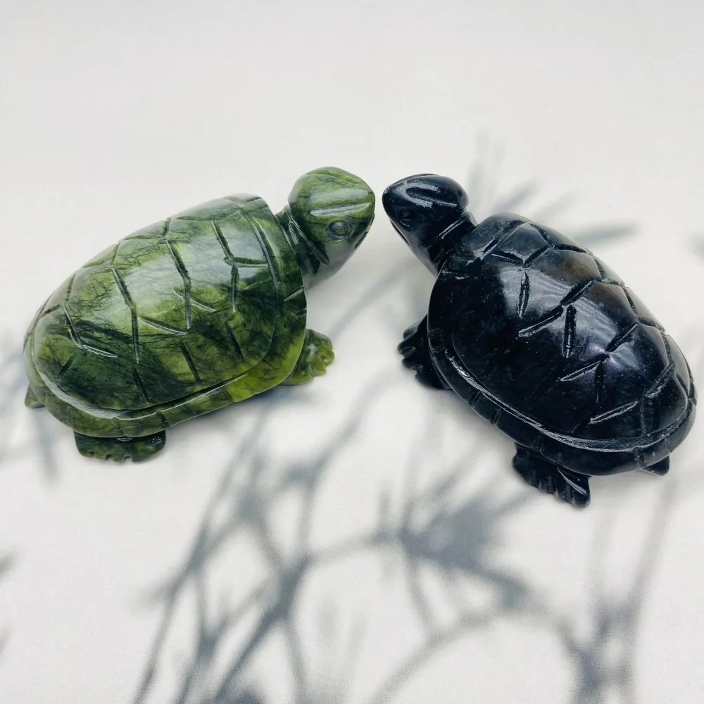 1Pc Turtle Statue Green Jade Ornaments Natural Reiki Stones Crystal Animal Figurine Crafts Carving Craft For Home Table Decor