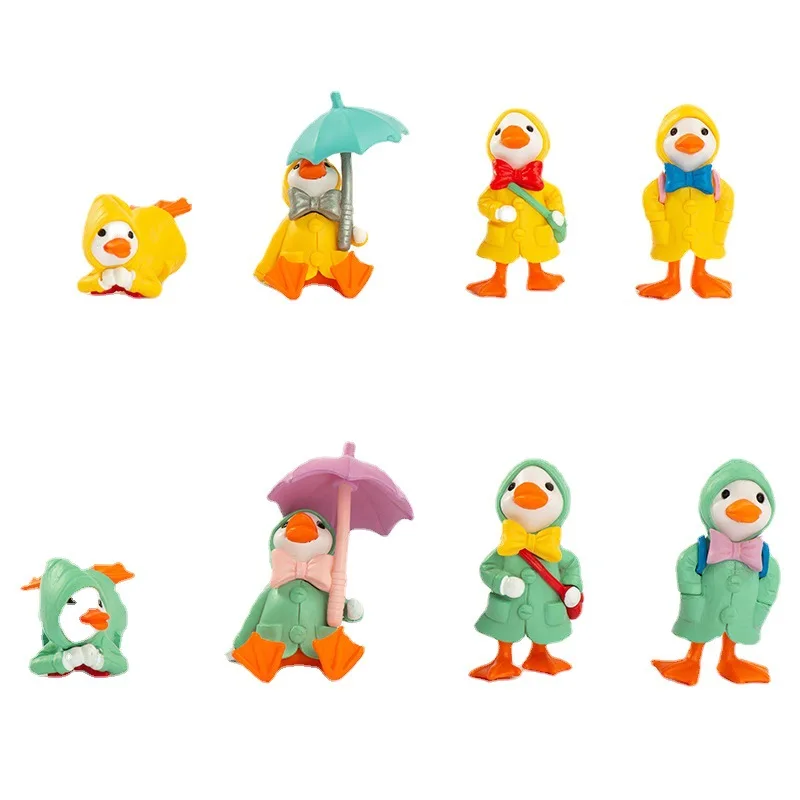 4pcs/set Umbrella Raincoat Cute Cartoon Duck miniature Figurine Ornaments Yellow Ducklings Figurine for Miniature Garden Decor