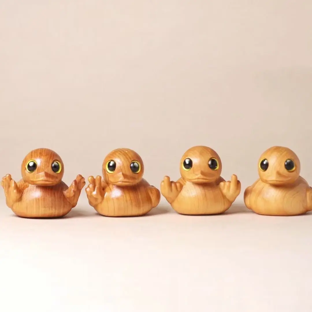 1pcs Funny Middle Finger Duck Toys Handmade Wooden Statue Mini Duck Figurines Garden Decoration For Home Desktop Miniature Ducks