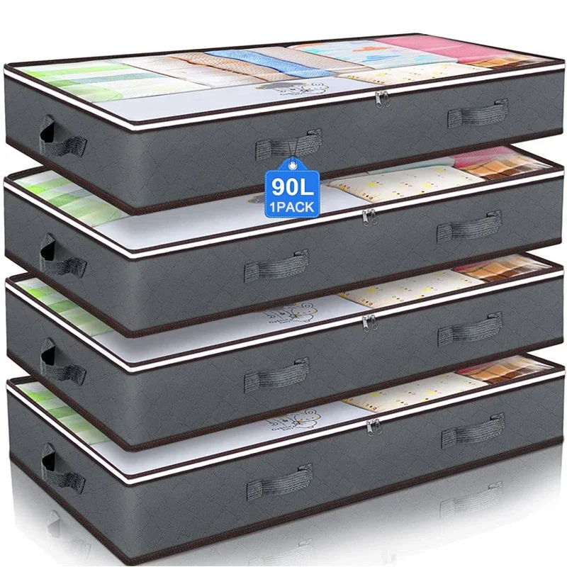 Non-woven Underbed Quilt Storage Bag Organizer Wardrobe Clothes Dust Moisture-proof Finishing Bag Foldable Storage Box 100x50x15
