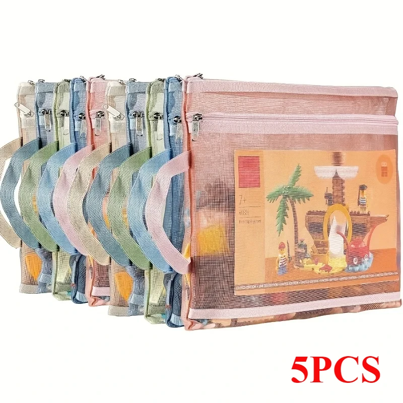 5pcs Colored Mesh Zipper Storage Bag, Double-Layer Nylon Organizer Pouch, For Puzzle Building Block Toy Storage Organization  Read more