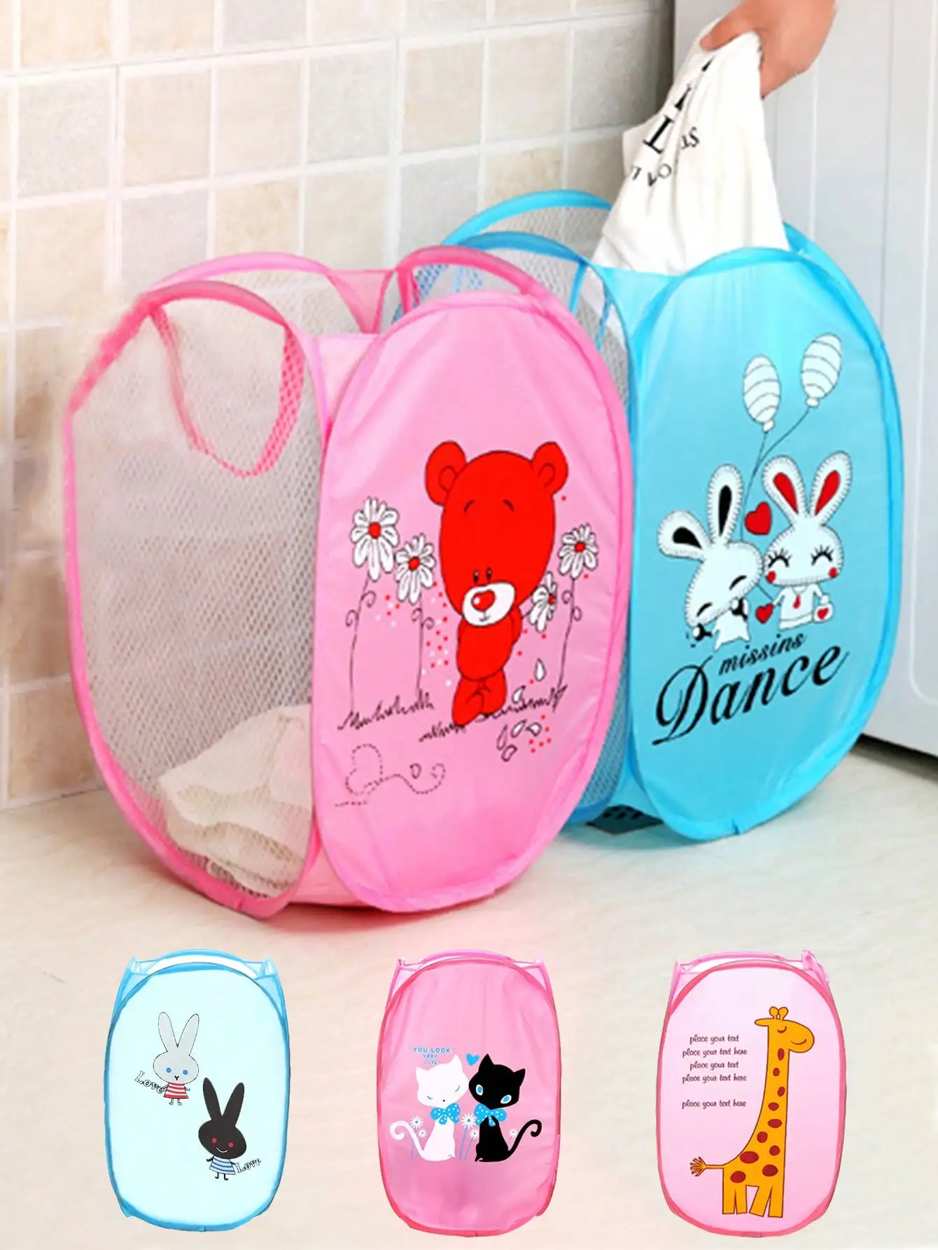 Cartoon Foldable Mesh Dirty Clothes Basket