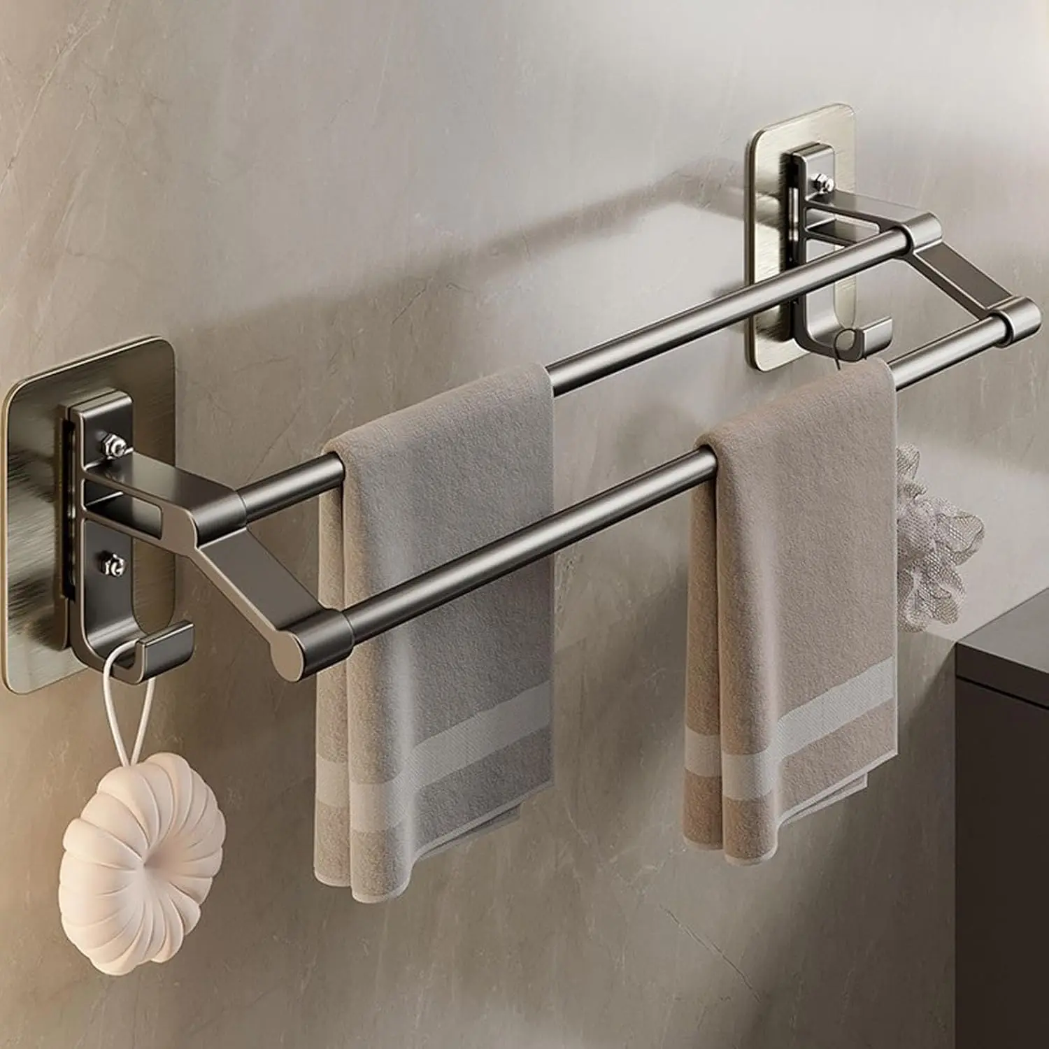 Wall Mounted Towel Rack Bathroom Storage Rack No Drilling Bathroom Horizontal Bar Towel Rack Kitchen Bathroom Accessories