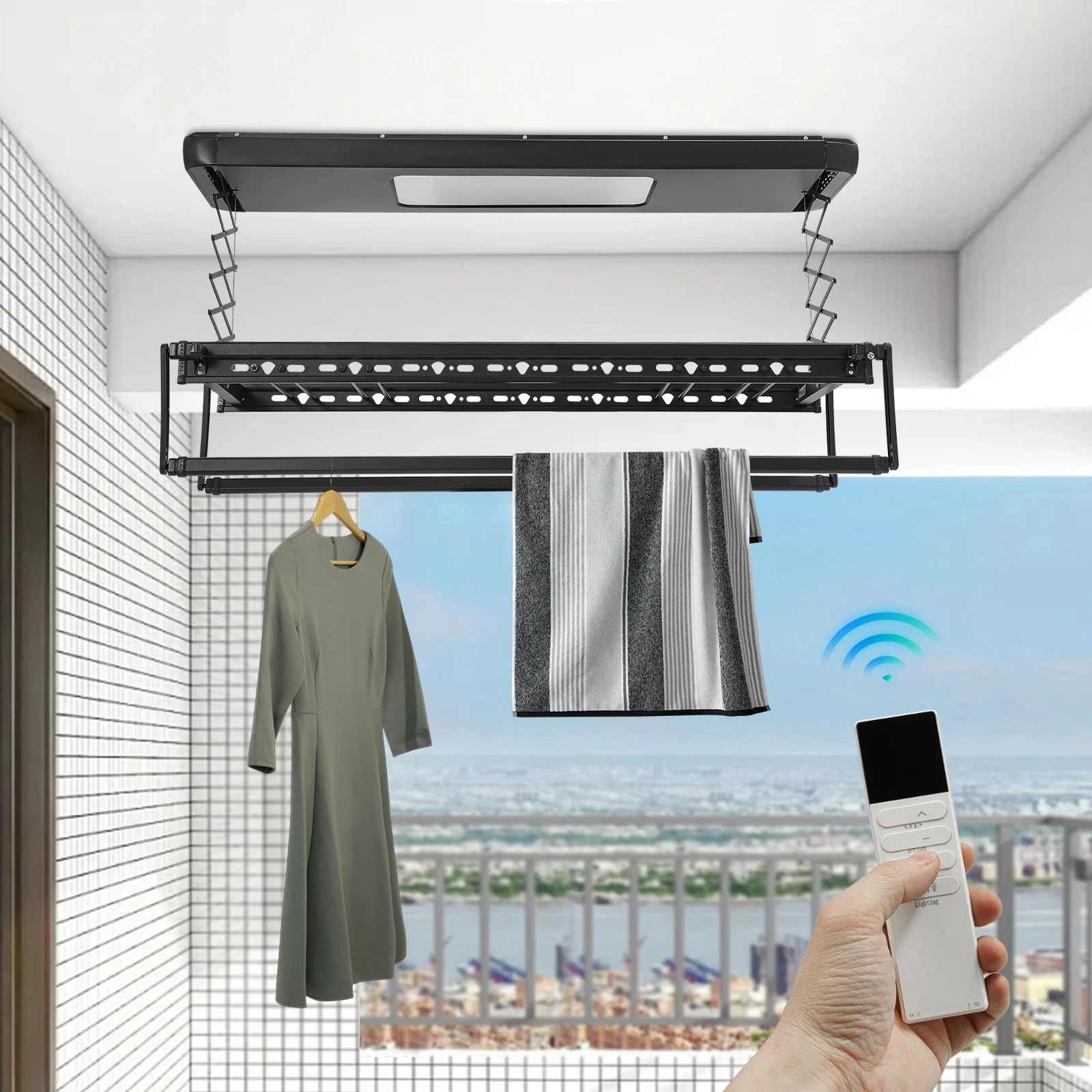 24W Electric Retractable Airing Rack Black/Off-White/Grey, Ceiling Mounted Clothes Drying Rack with LED Light & Remote  Read more