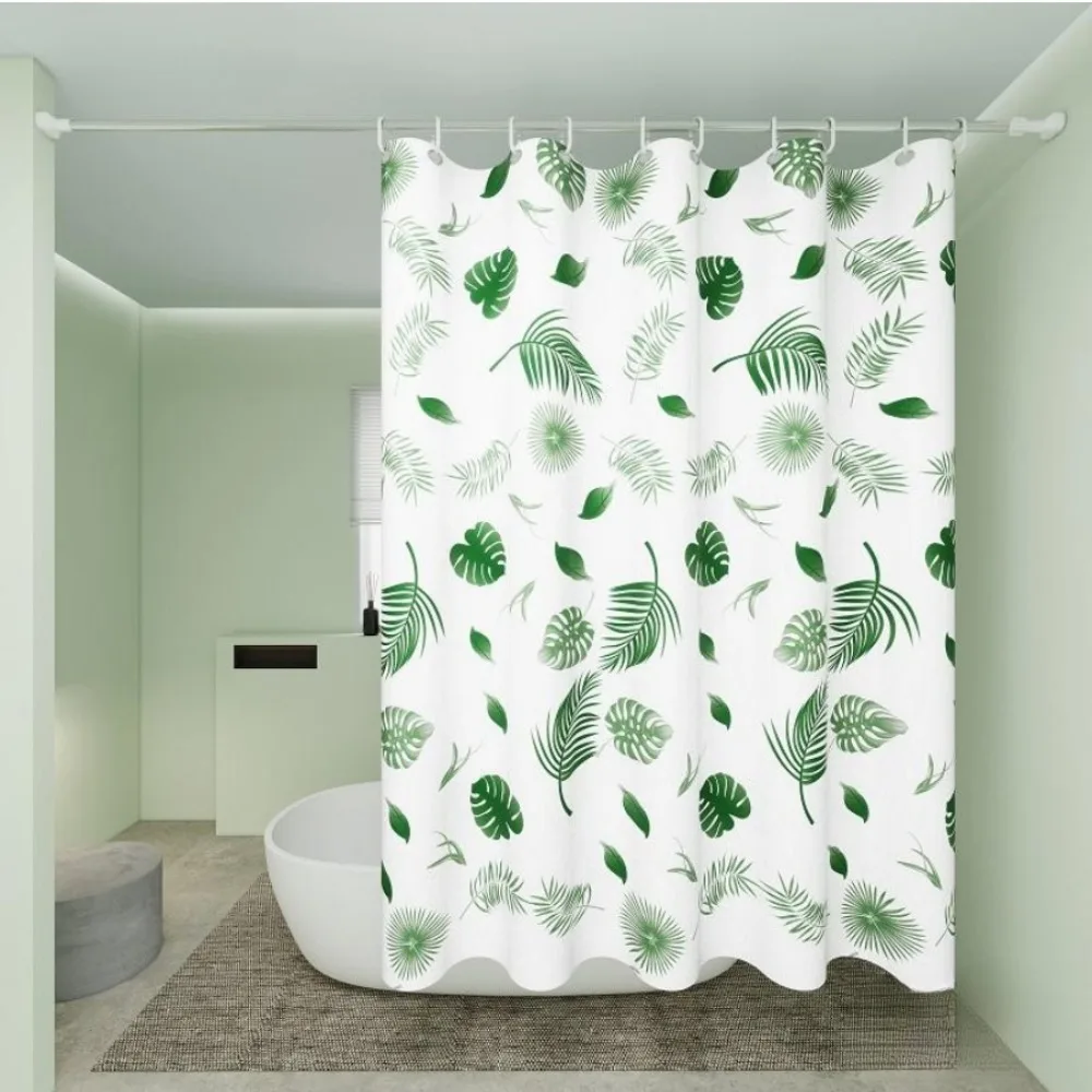 Bathroom Shower Curtains PEVA Waterproof Thickening Bath Curtain With Hooks Rustproof Metal Grommets Leaf Pattern Shower Curtain