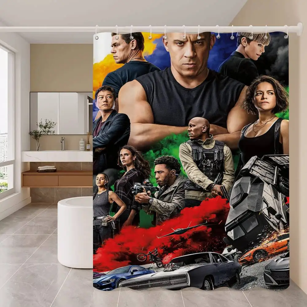Fast Furious Movie White Shower Curtain, Bathroom Decorative Shower Curtain, Waterproof Shower Curtain With Hooks