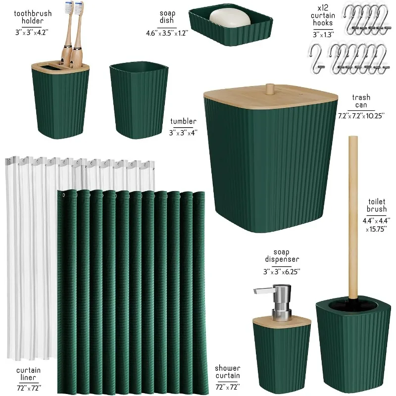 Bathroom Accessories Set - Green Bathroom Set, 20PC Bathroom Accessory Set, Shower Curtain Set, Toilet Brush, Trash
