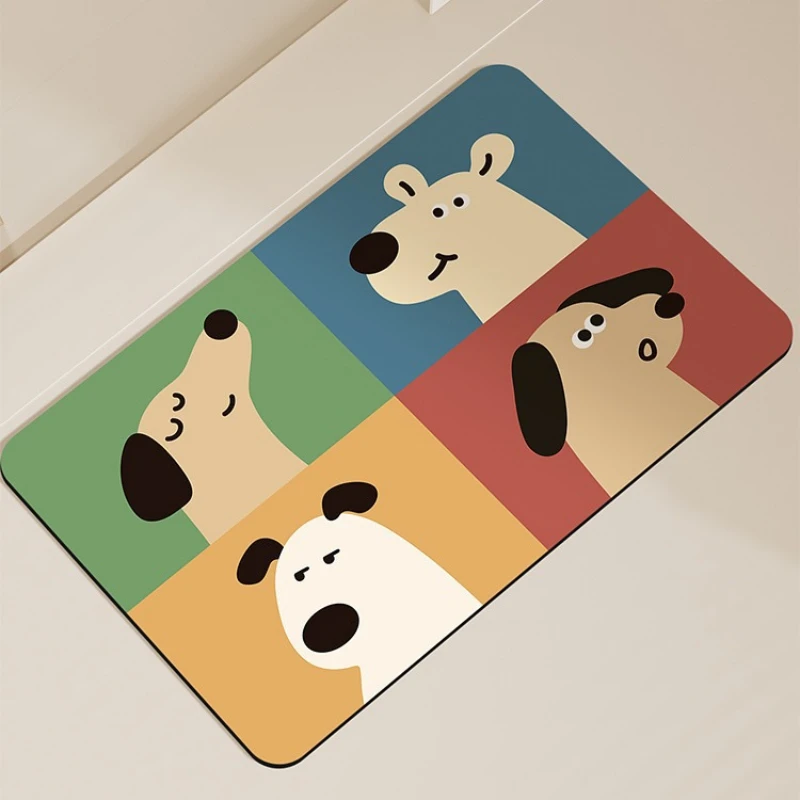 Cartoon Simple Style Bathroom Rug Quick Dry Super Absorbent Doormat Diatomite Mud Non Slip Rubber Rug for in Front of Bathtub