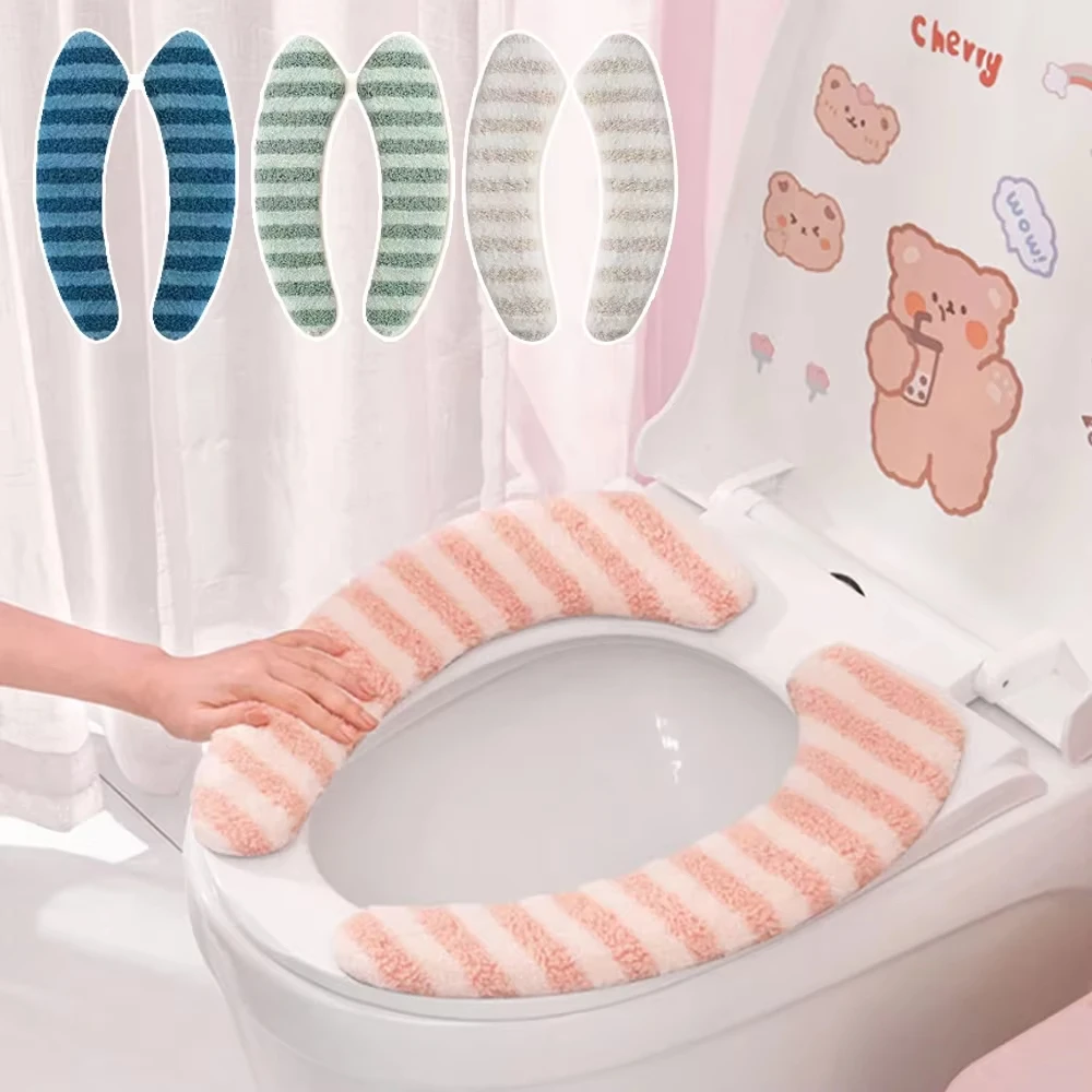 1Pair Thickened Toilet Seat Pad Cover Washable Soft Reusable Warmer Self-adhesive Bathroom Accessories Universal Toilet Seat Mat