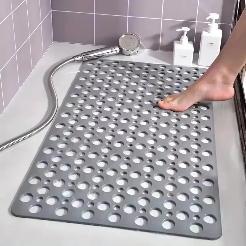 Square Non-slip Bathroom Mat with Suction Cup and Round Hole Design Shower Anti-fall Household Shower Massage Quick Drainage Mat