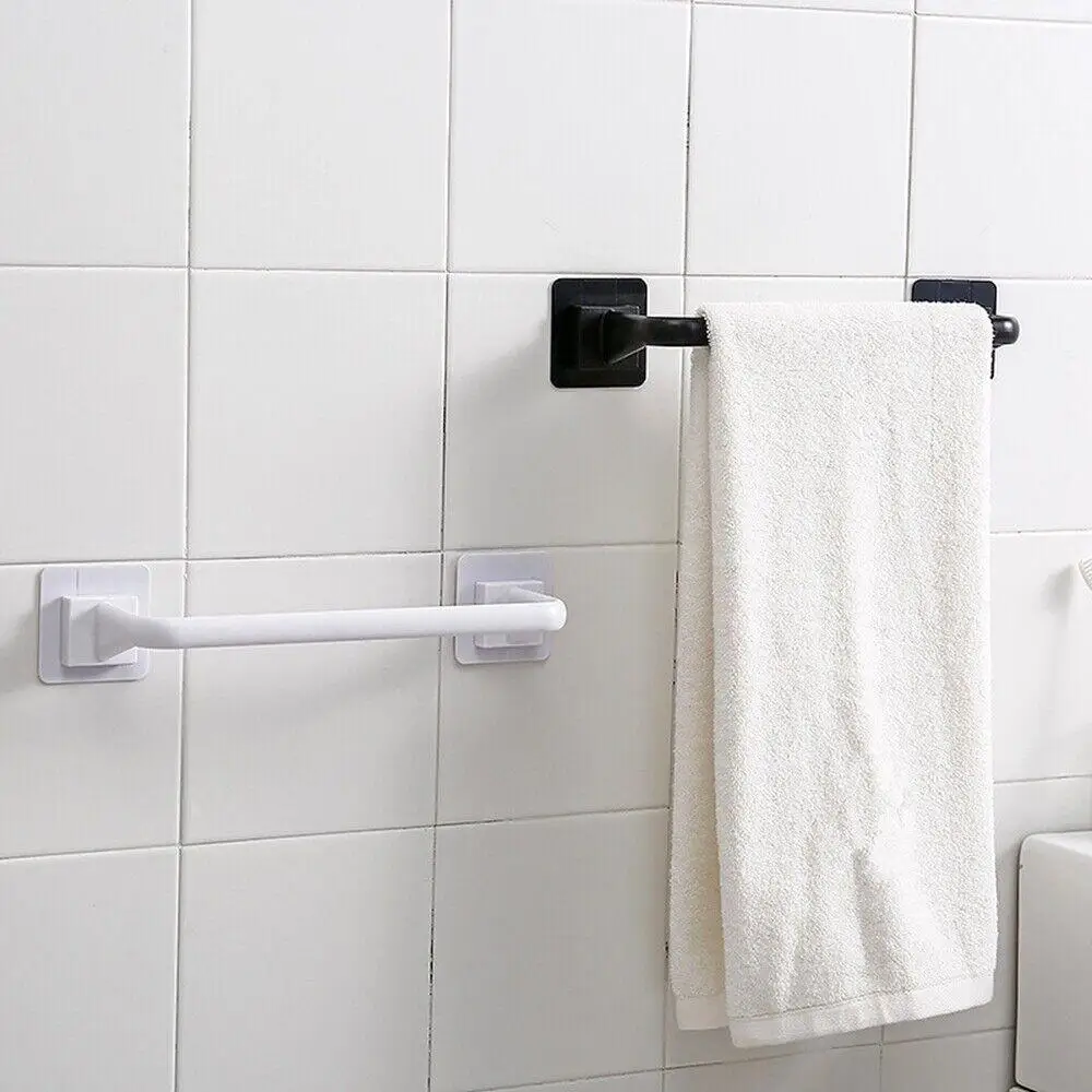 Kitchen Bathroom Wall Bath Towel Holder Rail Rack Self Adhesive Towel Rod Bar Portable Useful Household Gadget