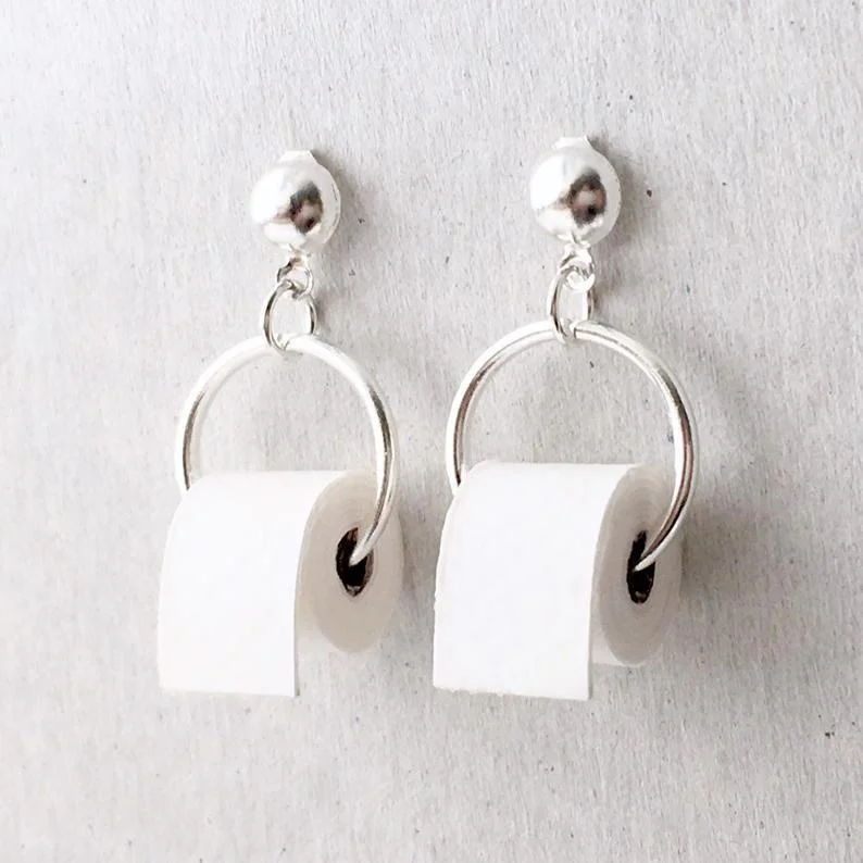 1Pair Handmade TOILET PAPER ROLL Funny Elegant Mini Dangle Earrings Toilet Holder Toilet Ring Holder