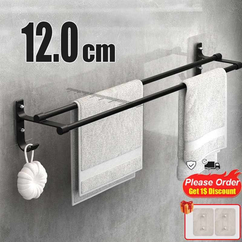 60CM Bathroom Hand Towel Rack Towel Holder Wall Mount No Drill Mount Towel Bar Aluminium Double Bar 2 Tier Bathroom Organizer