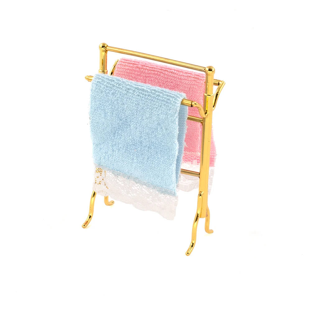 1/12 Dollhouse Miniature Accessories Mini Towel with Rack Simulation Bathroom Bath Frame Model Toys for Doll House Decoration