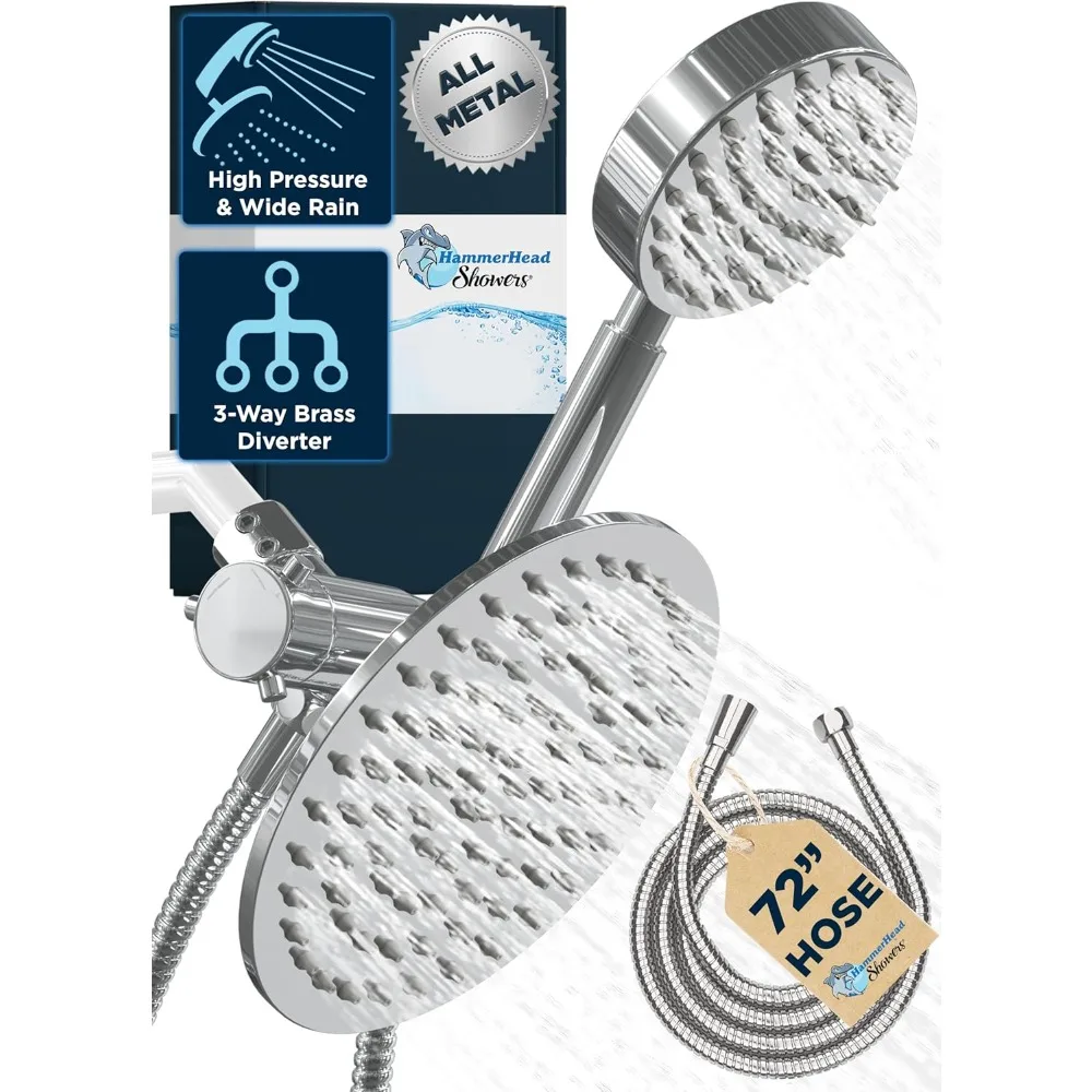 Solid Metal Dual Shower Head Set - 8 Inch High Flow Rainfall Head and Handheld, Chrome Finish  Read more