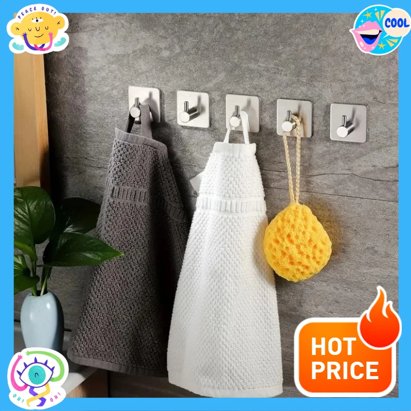 1/10PCS Stainless Steel Hooks Self-Adhesive Kitchen Wall Hook Rust-proof Bathroom Towel Hanger Waterproof Storage Hanging Holder