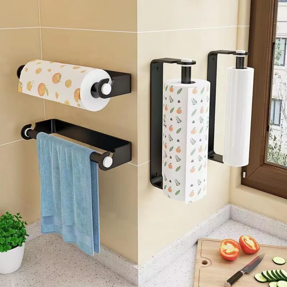 Under Cabinet Paper Towel Holder Plastic Wrap Storage Holder Wall Mounted Self Adhesive Kitchen Bathroom Perforate Metal Storage