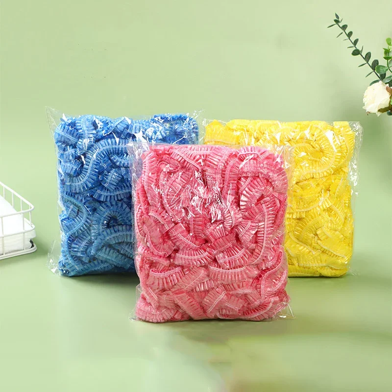 Women's Disposable Shower Cap, Plastic Waterproof Head Cover, Pink Spa Salon, Hotel Hair Dye, Elastic Hair Cap, 100 Pieces/set