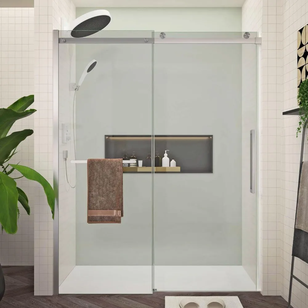 56-60" W x 76" H Frameless Sliding Shower Door, 5/16" (8mm) Clear SGCC Tempered Glass, Brushed Nickel Finish, Bathroom Glass Door  Read more