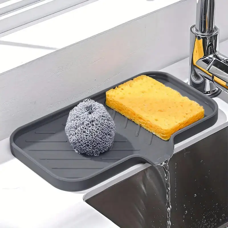 New Silicone Faucet Mat Kitchen Sink Tray Soap Dispenser Sponge Drain Pad Sink Splash Drying Mat Countertop Storage Tray