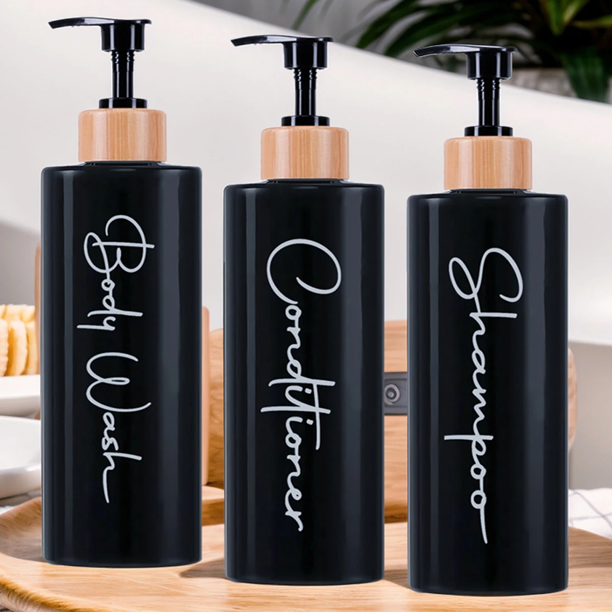 3pcs Shampoo and Conditioner Dispenser Set Empty Refillable Shower Room Shampoo Bottle Bathroom Soap Pump Bottles with Labels