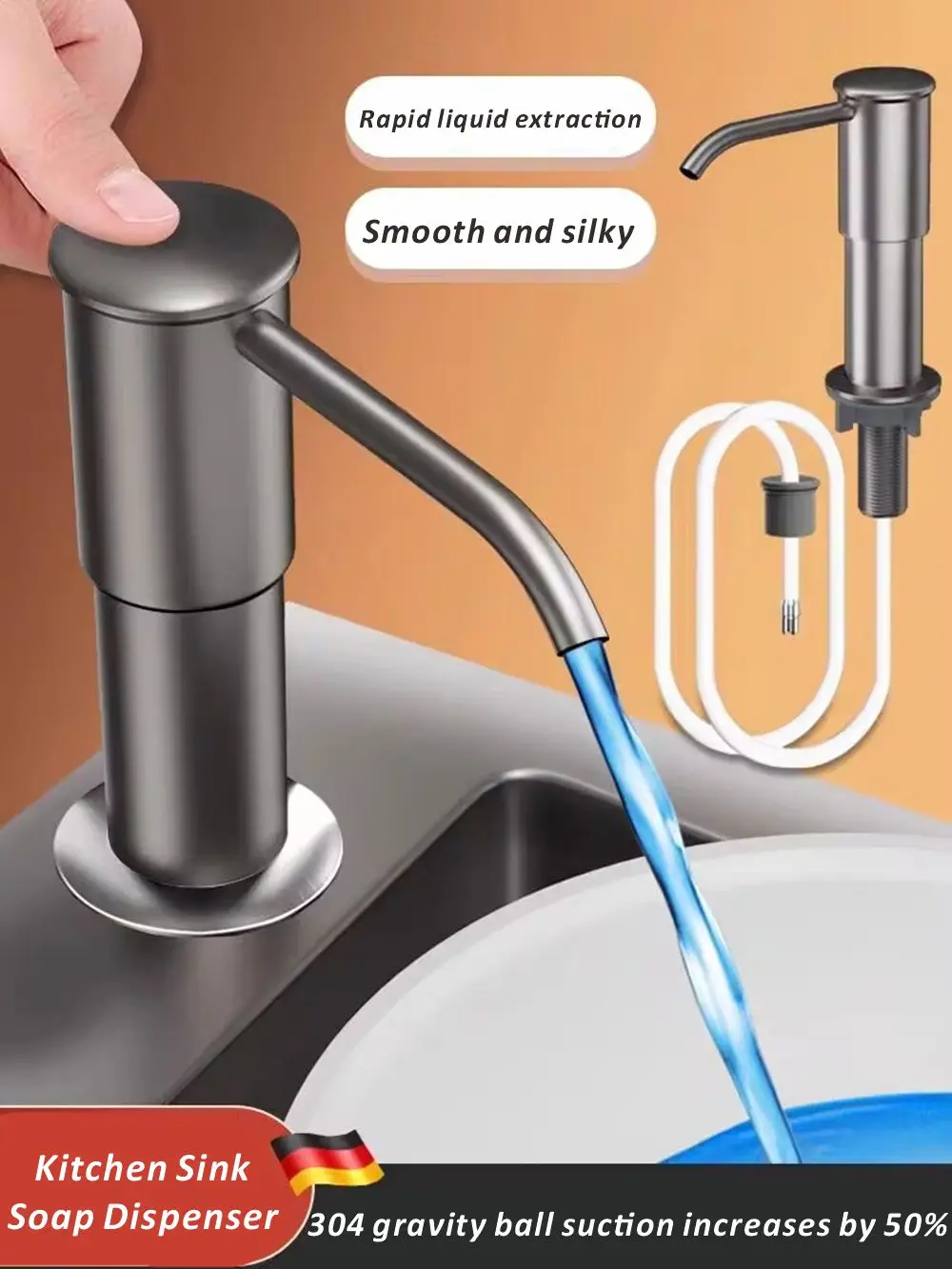 Stainless Steel Press Head Soap Dispenser for Kitchen Sink Soap Dispenser Extension Tube kit Under Sink Soap Dispenser Pump