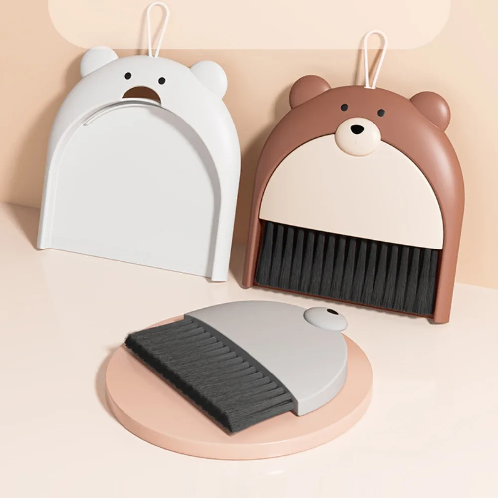 Small Broom Dustpan Set Cartoon Teddy Bear Household Desktop Garbage Shovel Small Dustpan Mini Foldable
