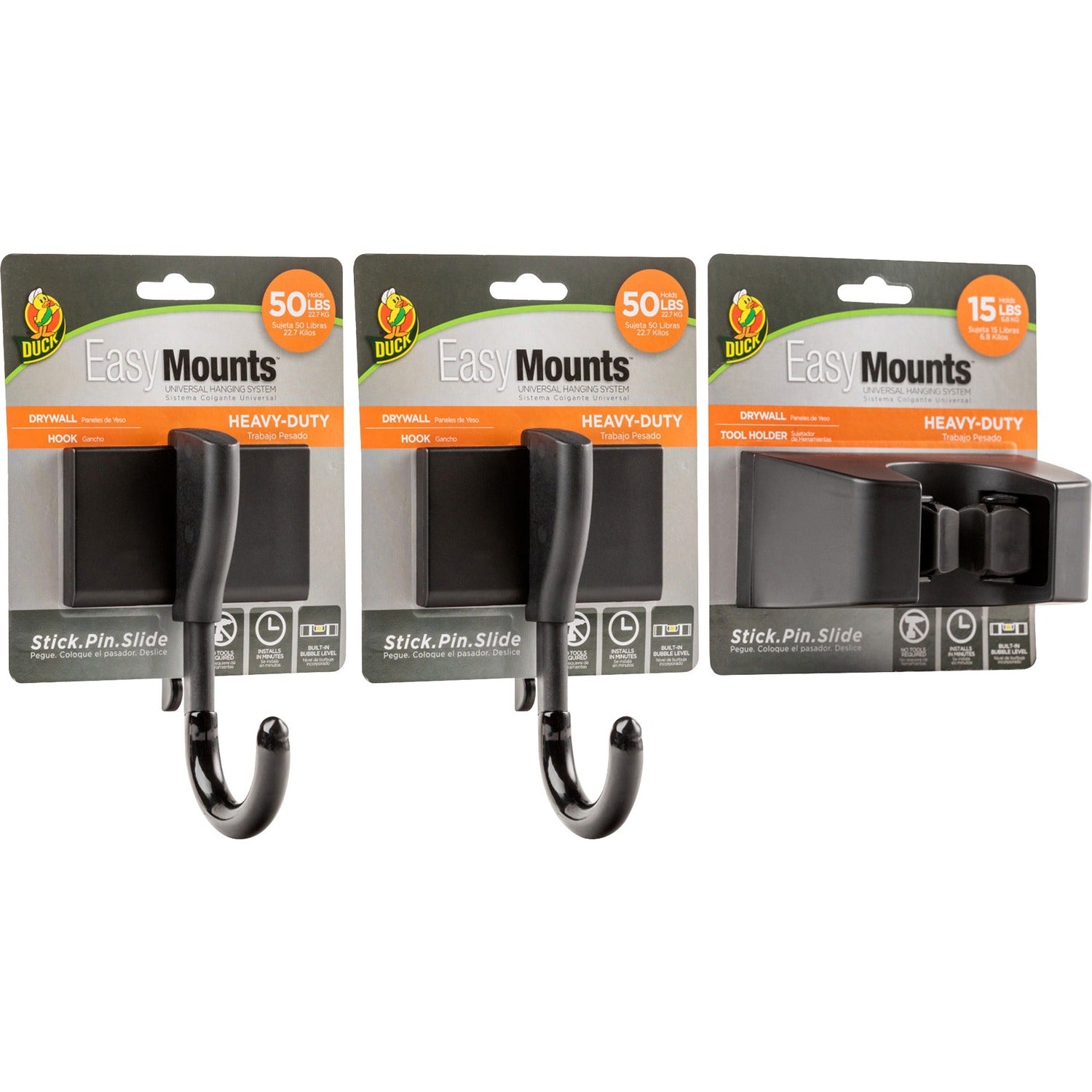 Duck EasyMounts Heavy-Duty Garage Kit - 15 lb (6.80 kg), 50 lb (22.68 kg) Capacity - for Home, Garage, Broom, Shovel - Black - 1 / Each (DUC287392)