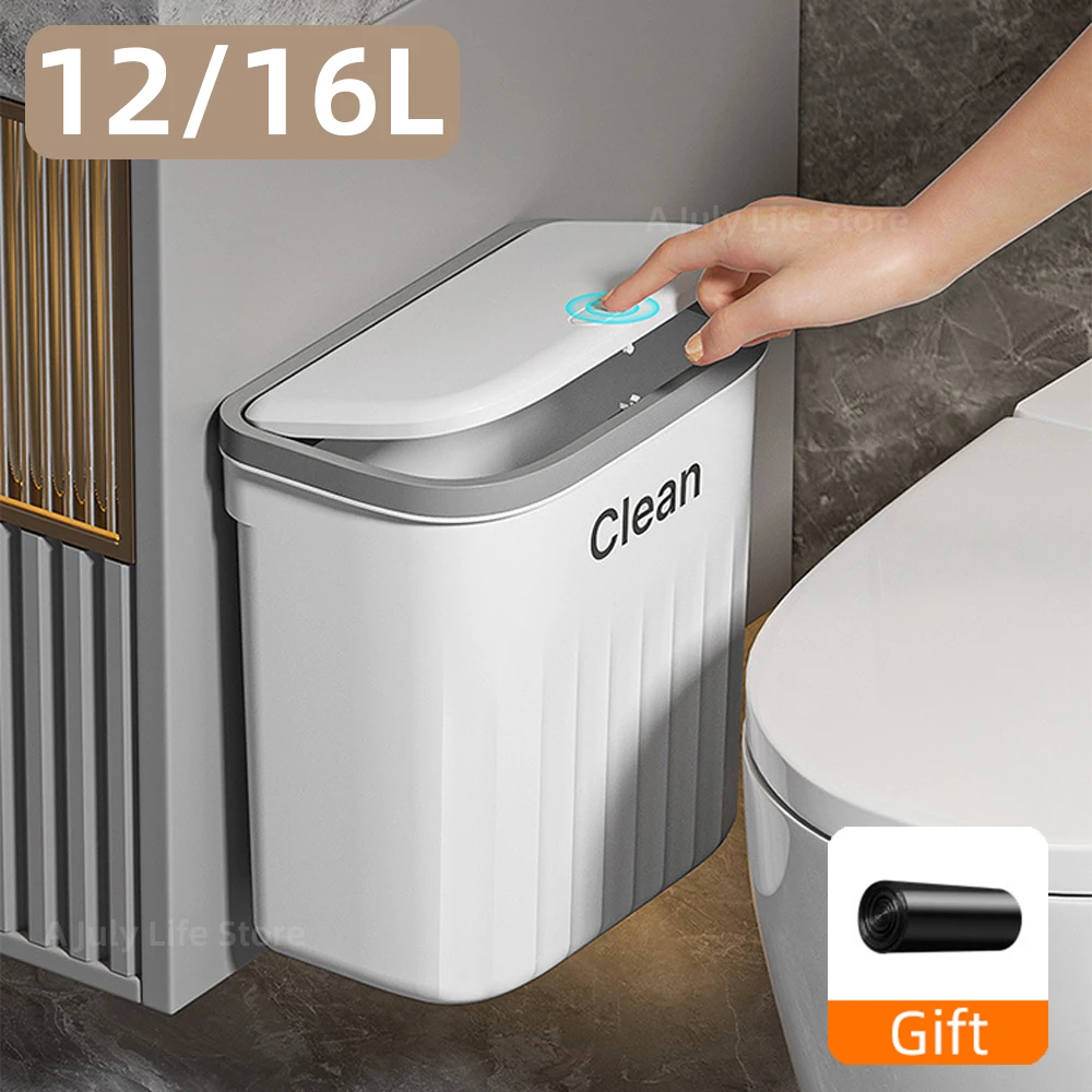 12/16L Press Type Wall Mounted Trash Can For Bathroom Toilet Garbage Bucket With Lid Kitchen Recycling Bin Hanging Wastebasket