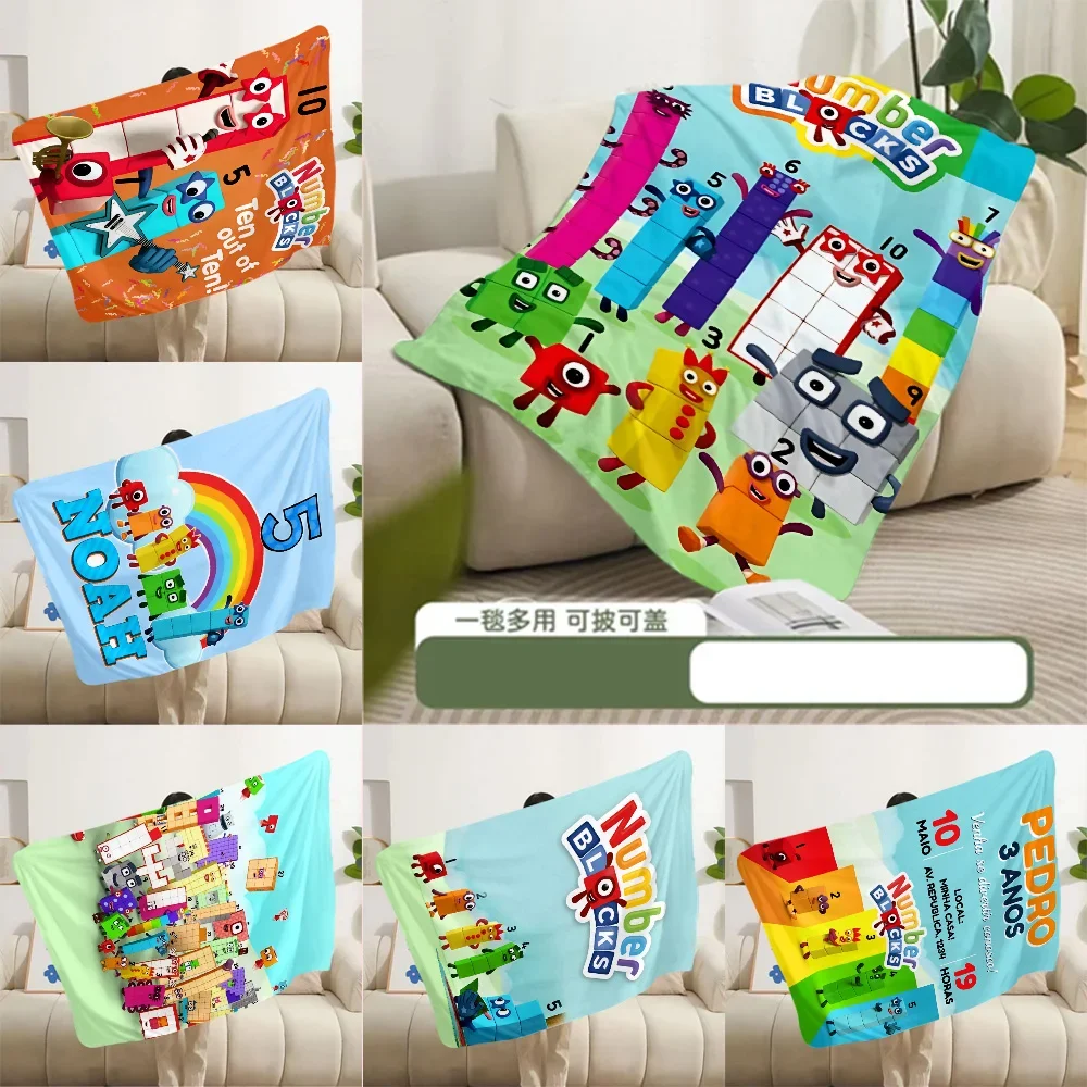 Soft Comfortable Cartoon Print Throw Blanket for Home Travel Birthday Gift Warm and Cozy with NNumber Blocks Design